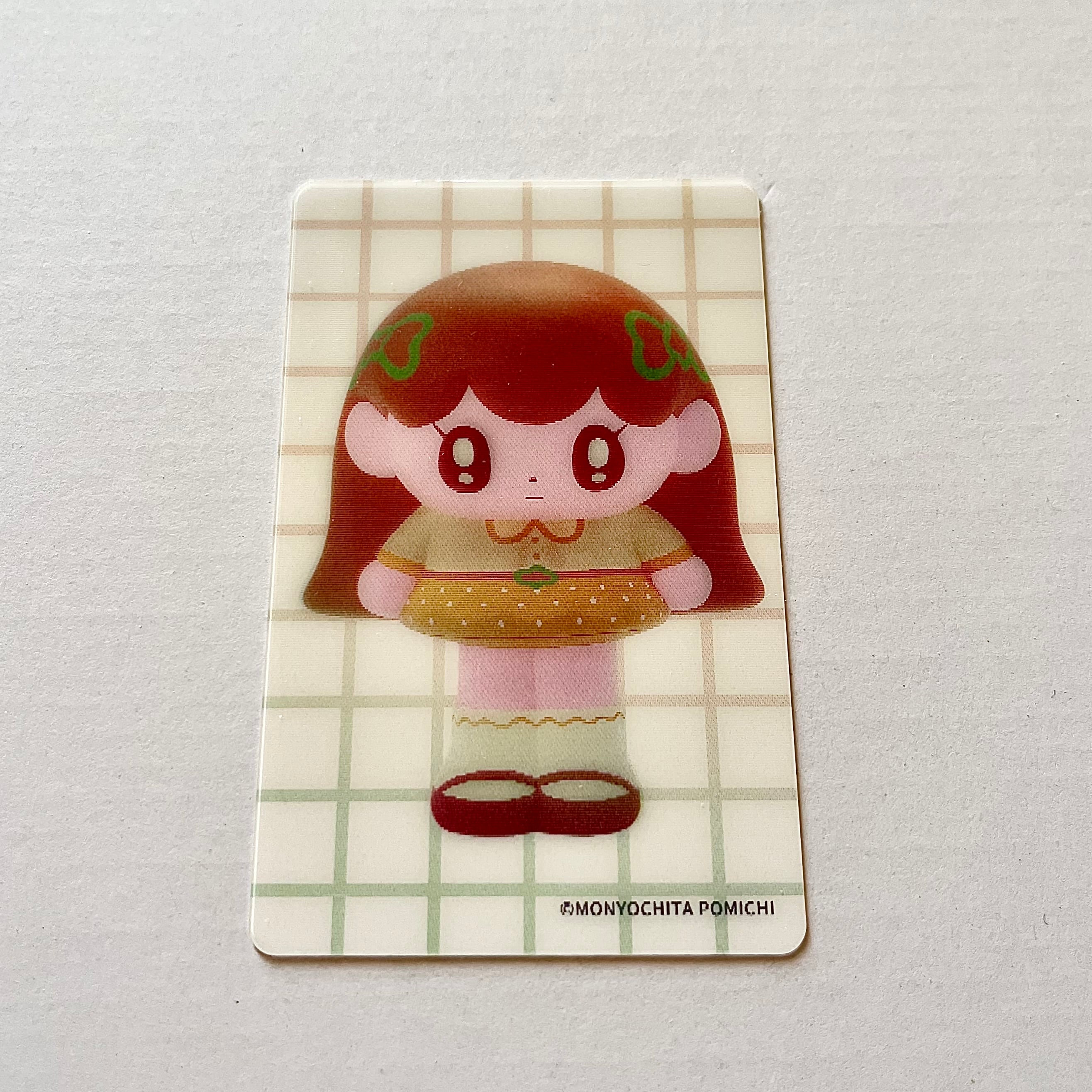 ※モニョチタポミチのセルフペイントによるMONYOGIRLソフビの「喫茶店」シリーズ4体の画像が変わるスマホケースに入るクレジットカードサイズのステッカー