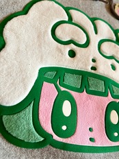 前面の絵柄部分は長さの違うフェイクファーを使用