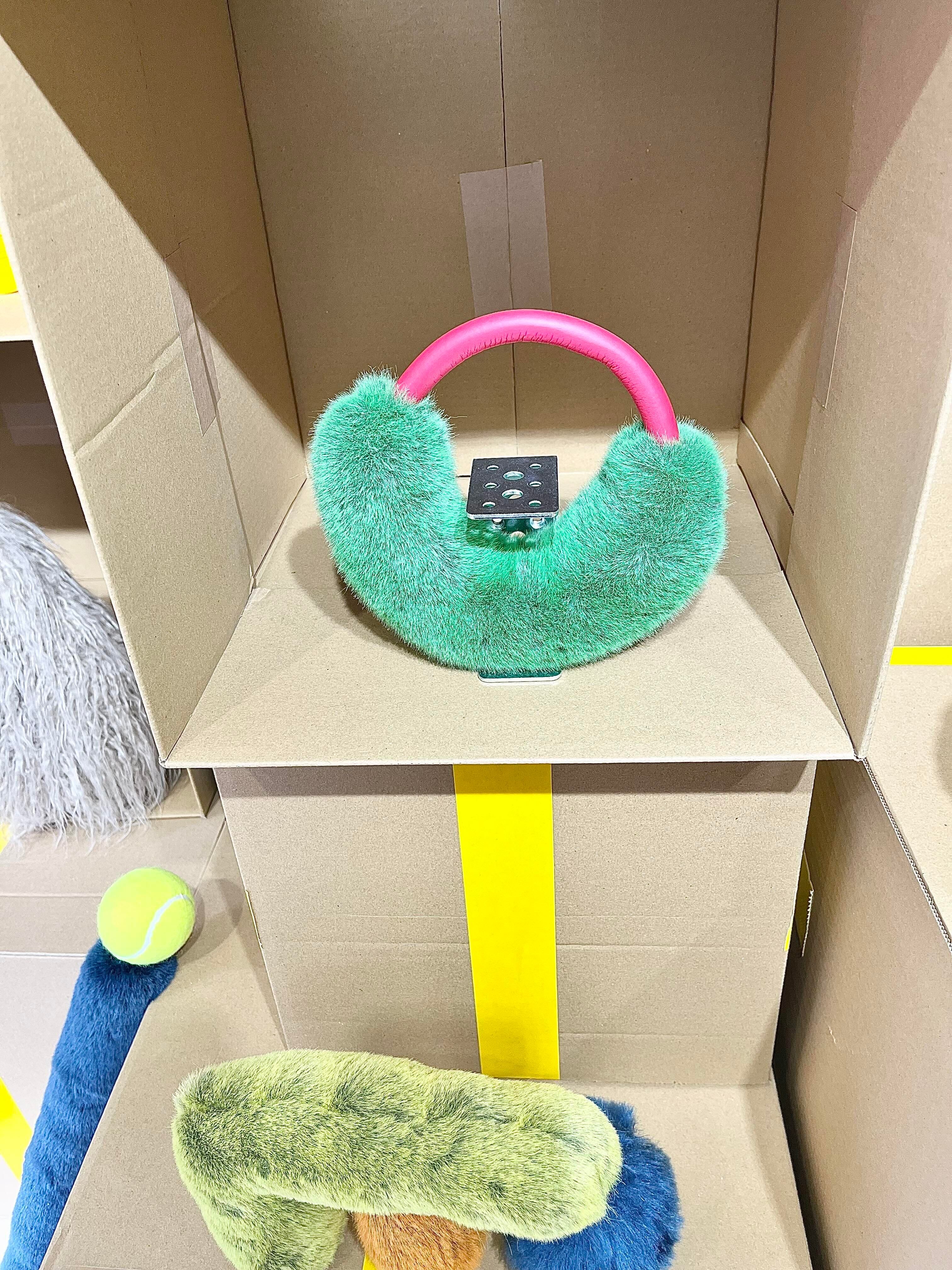 起毛生地や綿を用い、縫製技術を取り入れた立体作品を制作している。フェイクファーなどの起毛素材を多く用い、「人が残した痕跡」や「人との距離感」をテーマに制作を行っている。