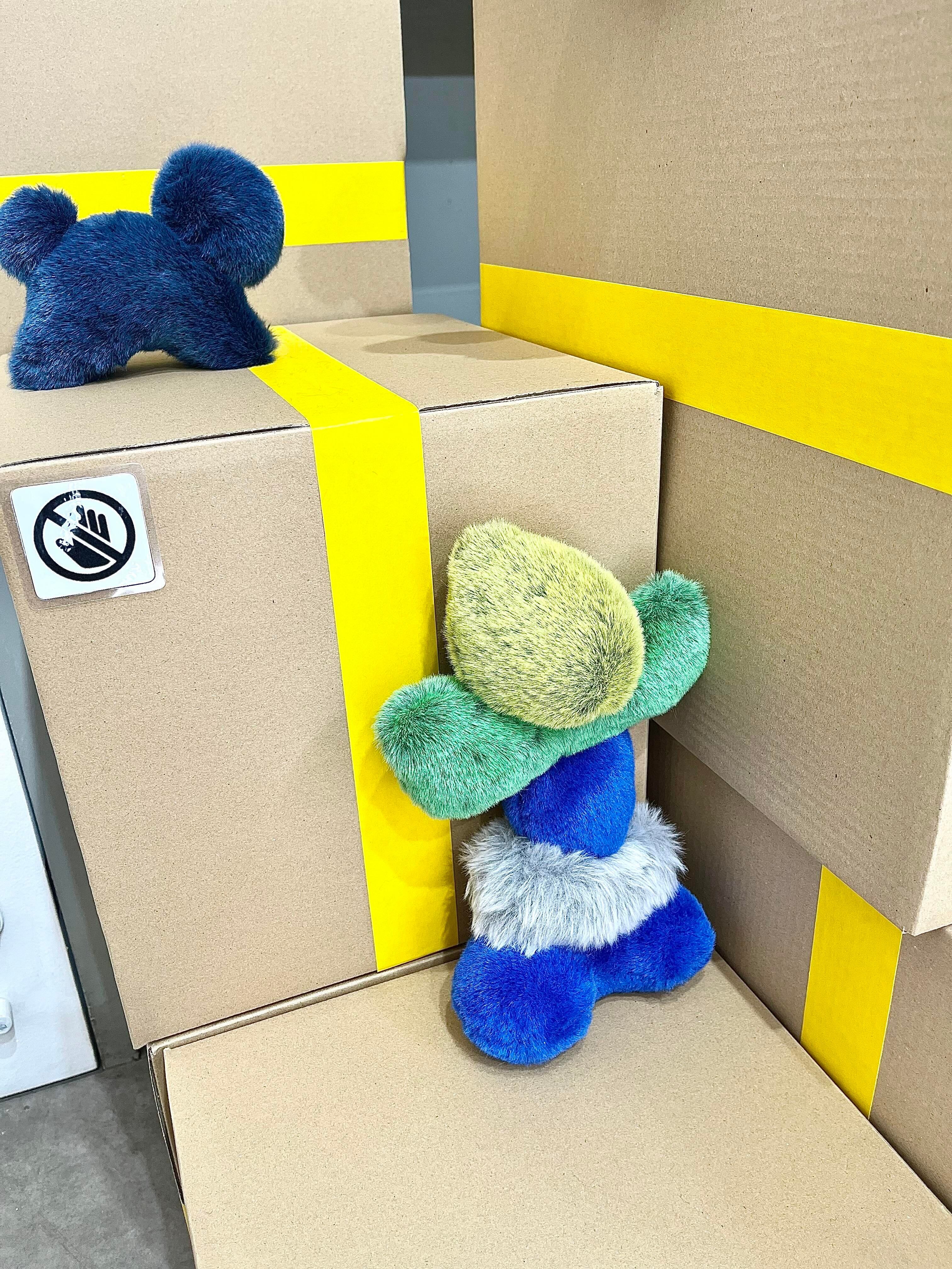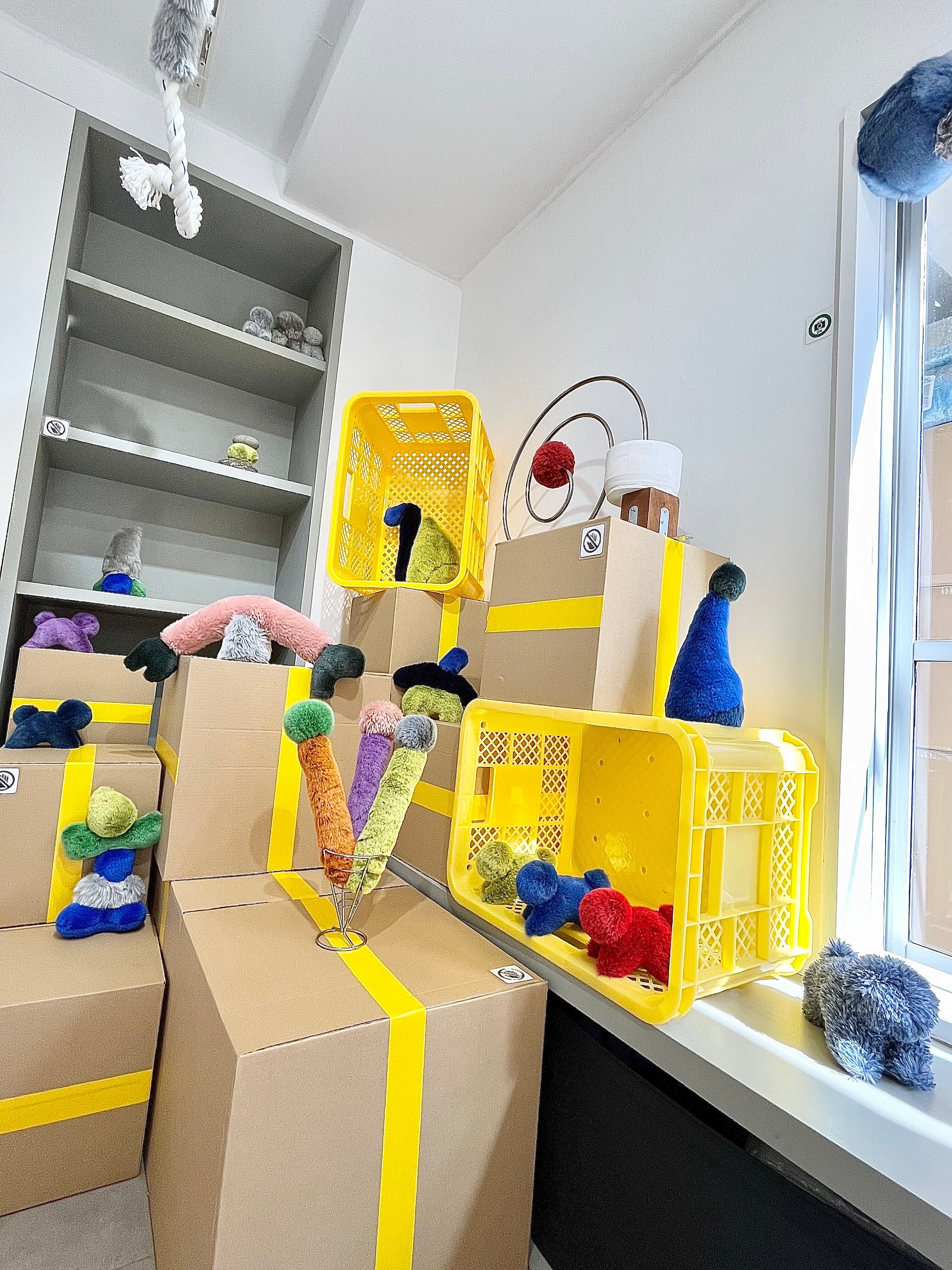 ふわふわとした質感や積み木のような造形から動物のような存在を連想する人もいれば、