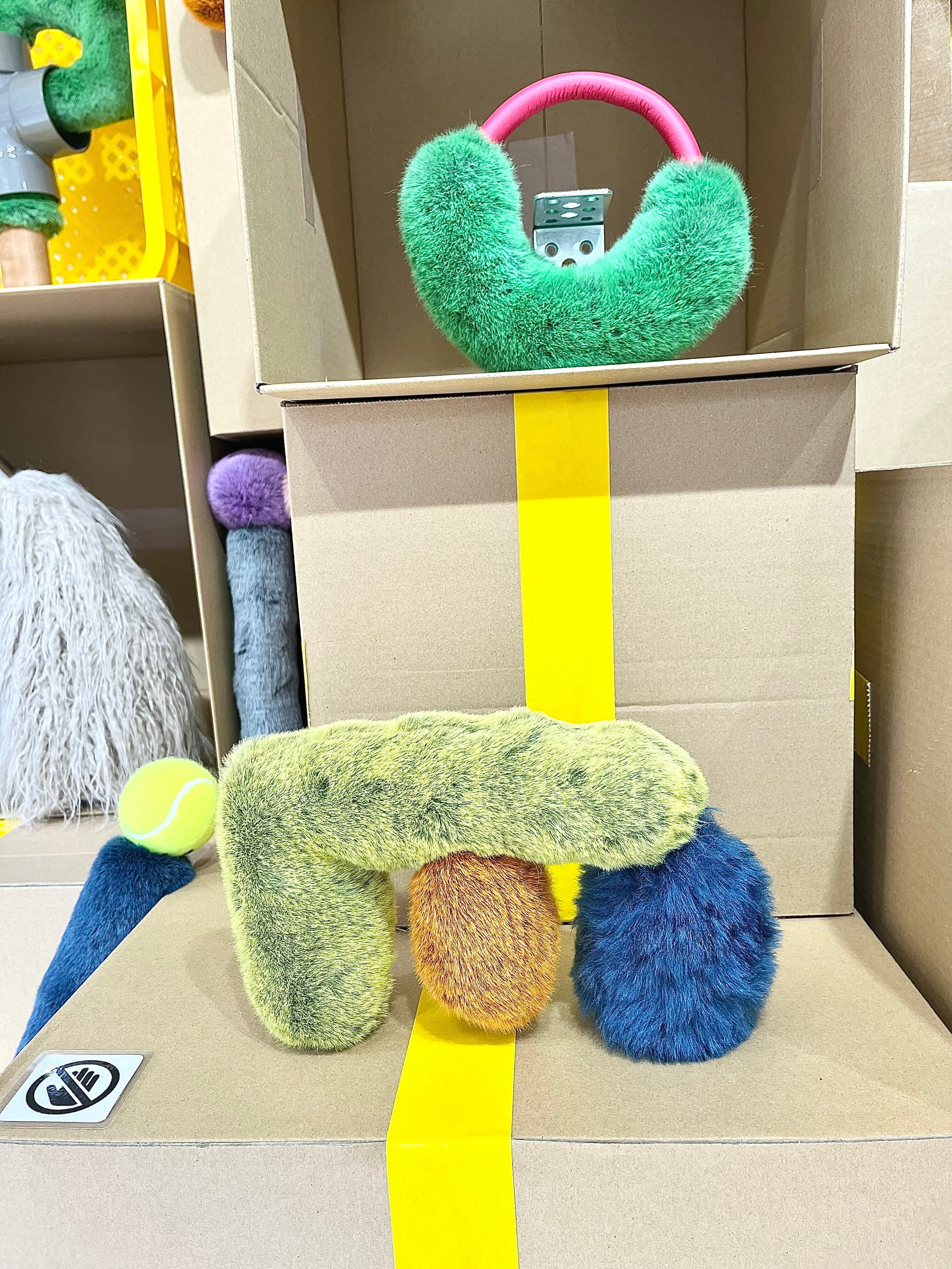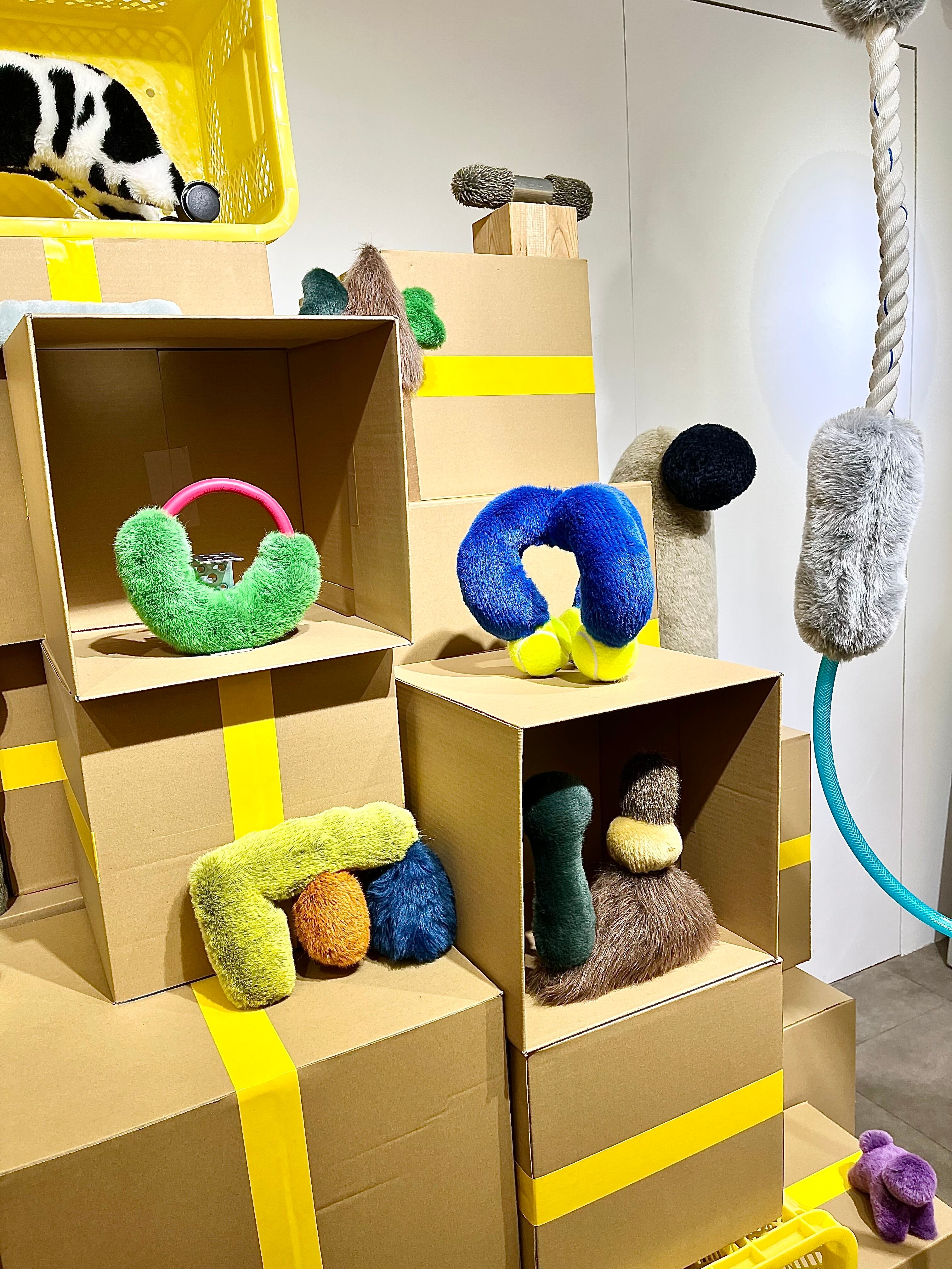 ふわふわとした質感や積み木のような造形から動物のような存在を連想する人もいれば、