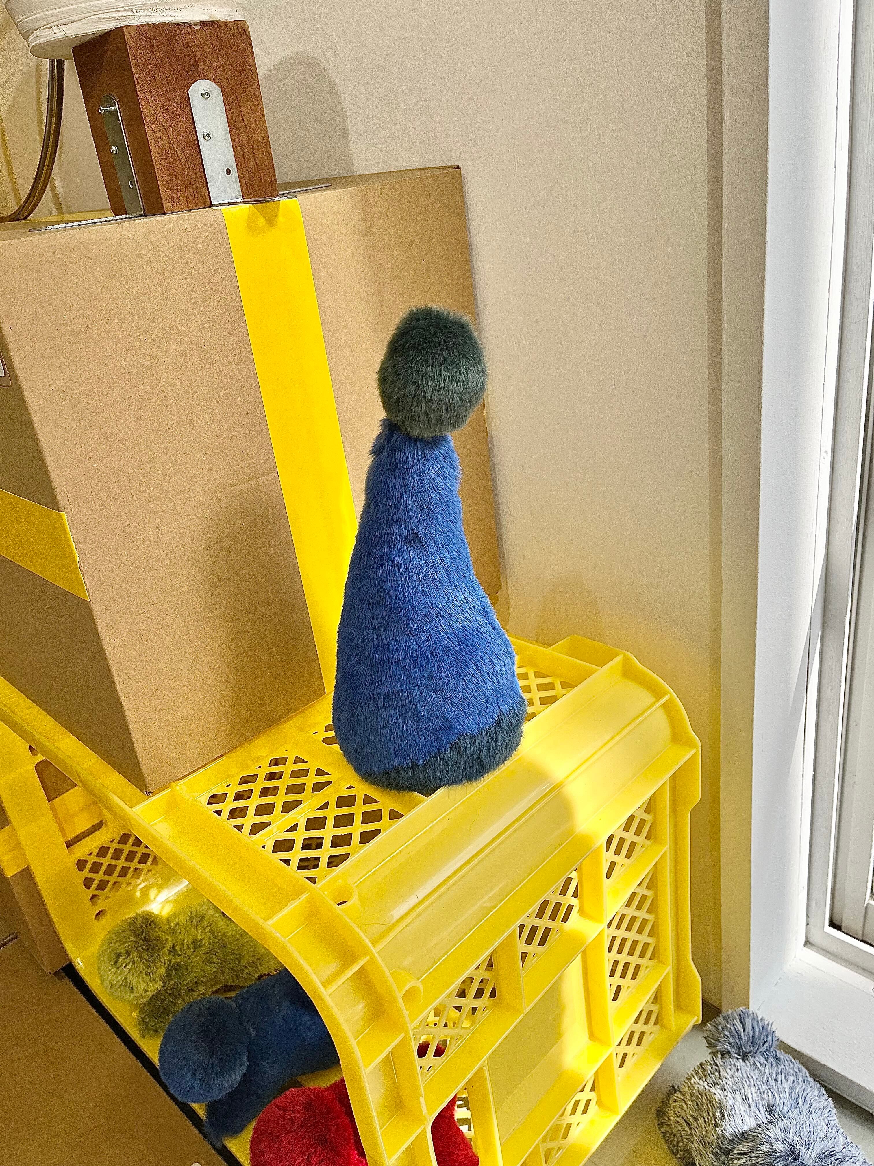 ふわふわとした質感や積み木のような造形から動物のような存在を連想する人もいれば、