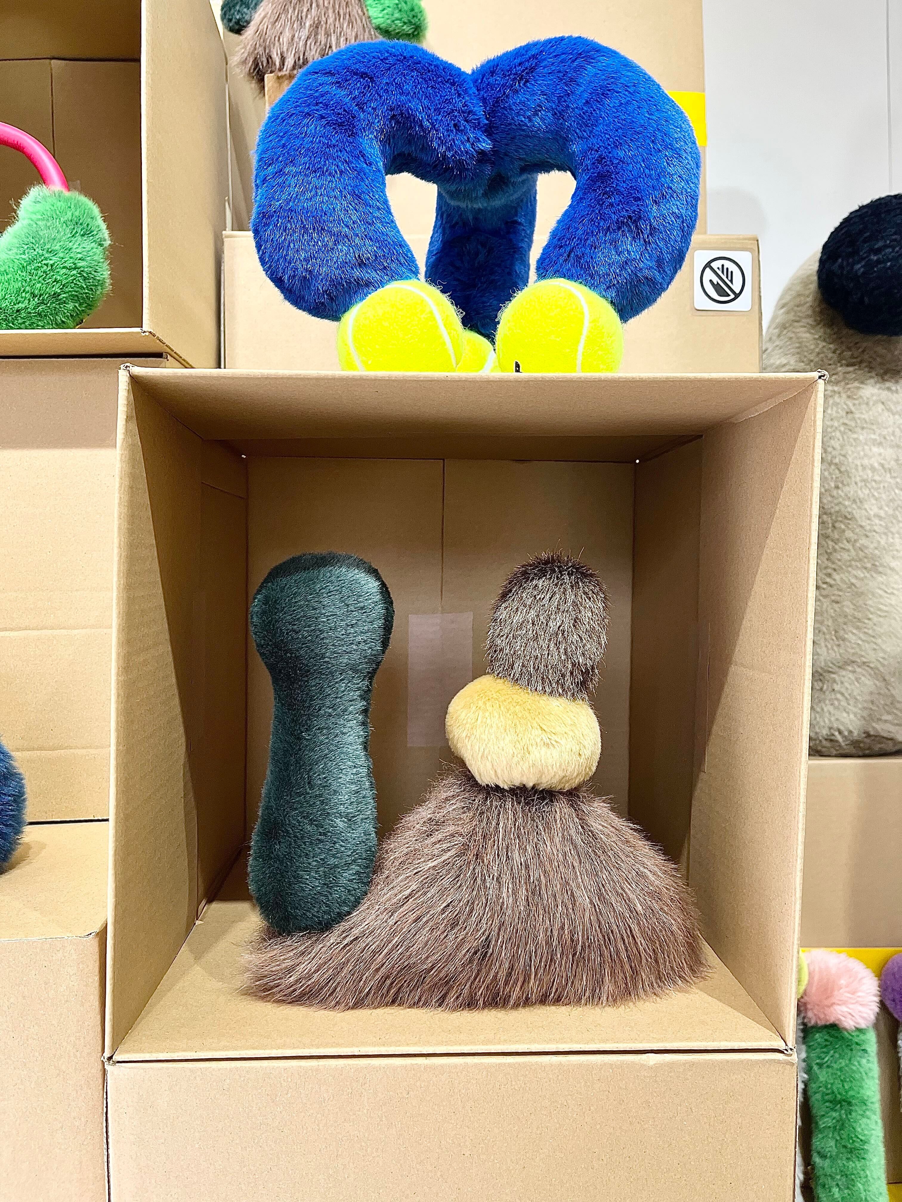 ふわふわとした質感や積み木のような造形から動物のような存在を連想する人もいれば、