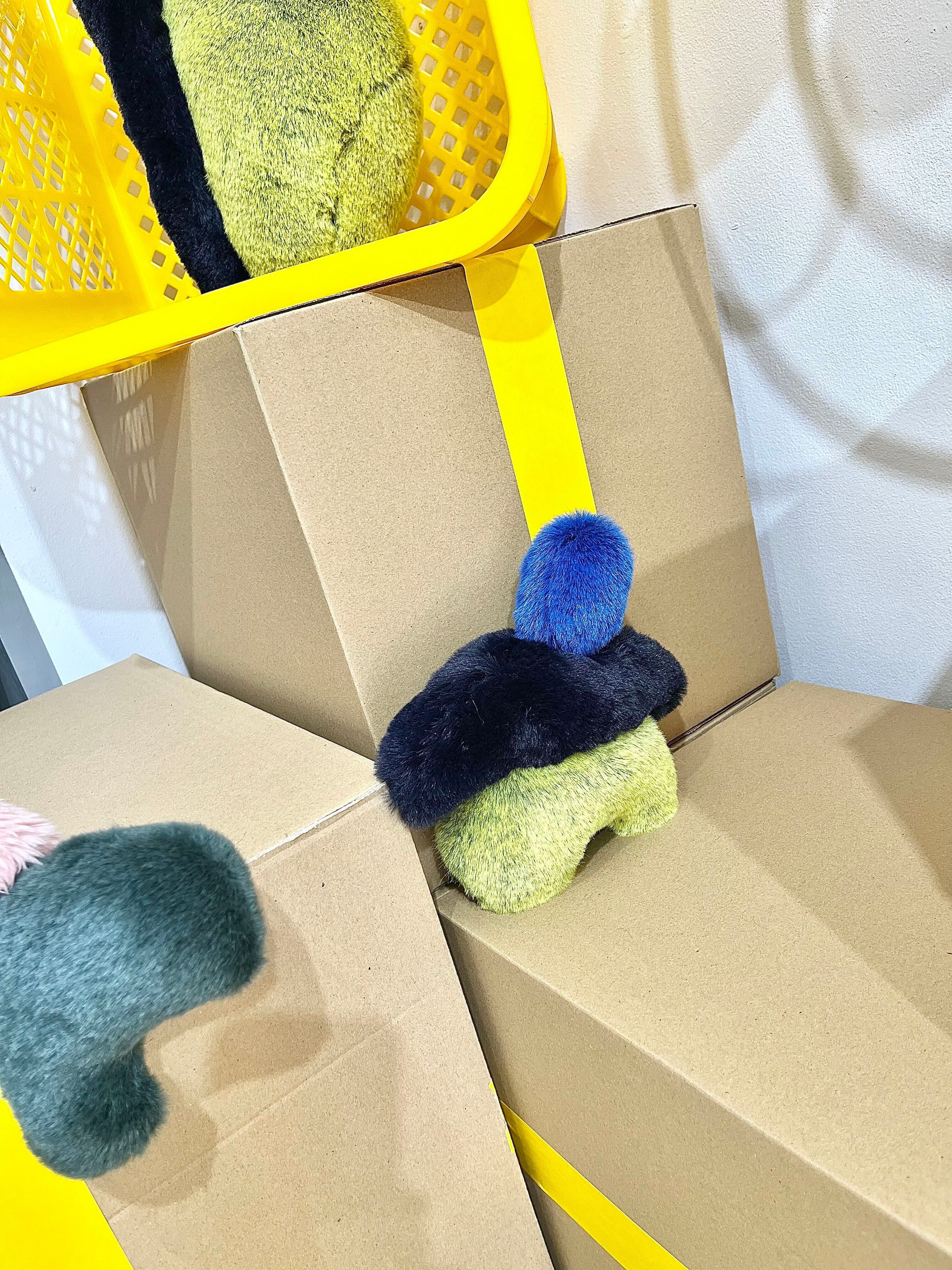ふわふわとした質感や積み木のような造形から動物のような存在を連想する人もいれば、
