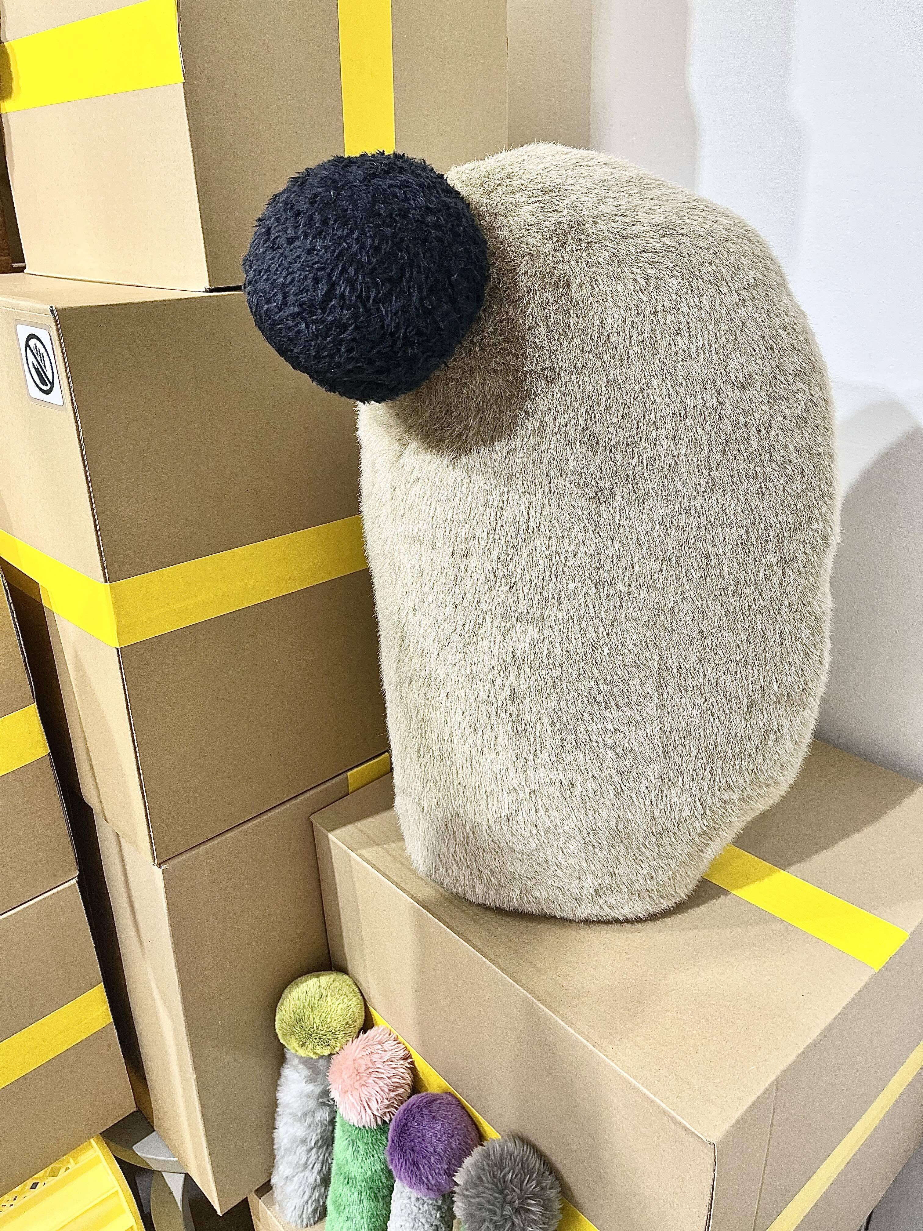 ふわふわとした質感や積み木のような造形から動物のような存在を連想する人もいれば、