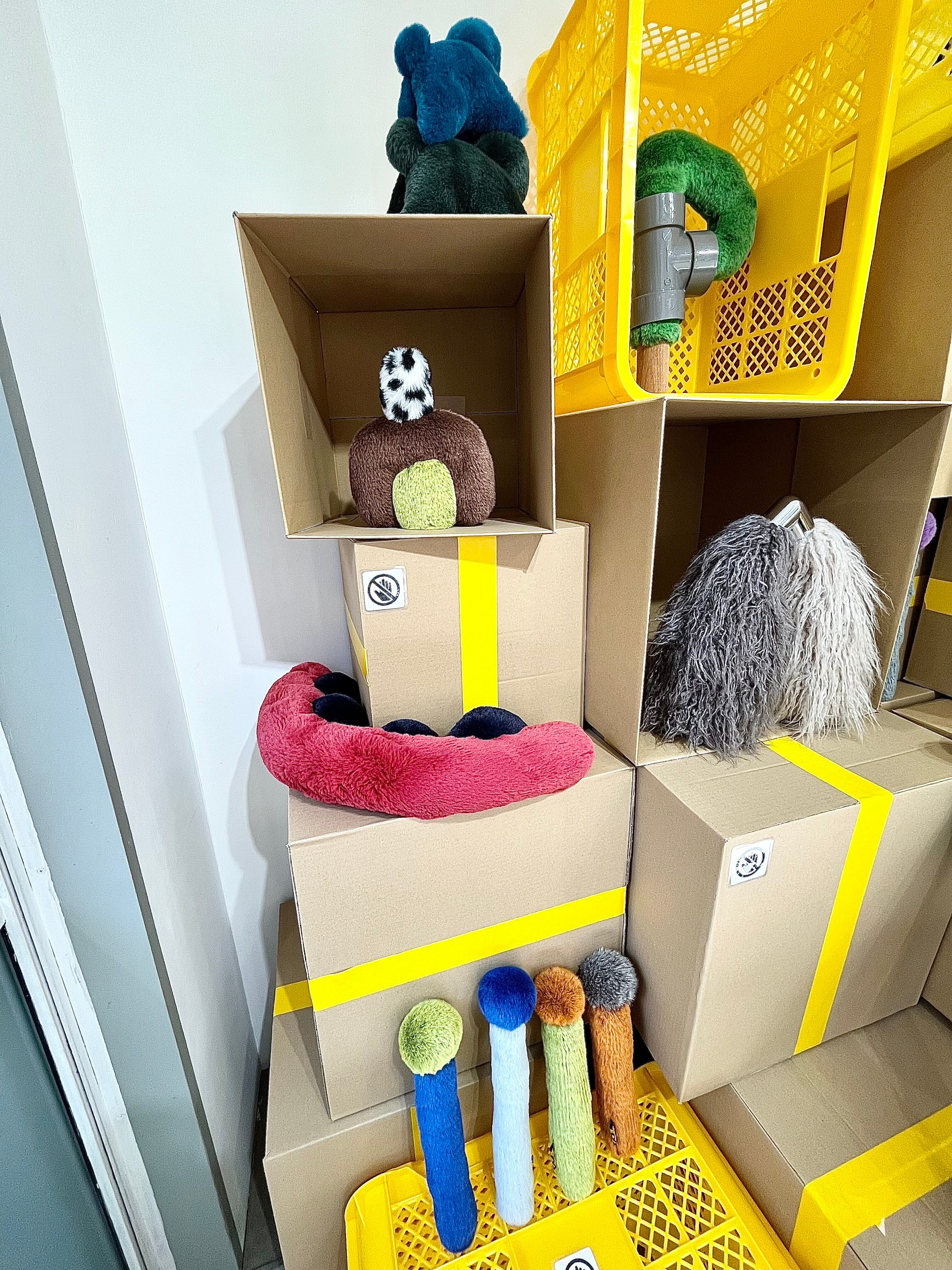 起毛生地や綿を用い、縫製技術を取り入れた立体作品を制作している。フェイクファーなどの起毛素材を多く用い、「人が残した痕跡」や「人との距離感」をテーマに制作を行っている。