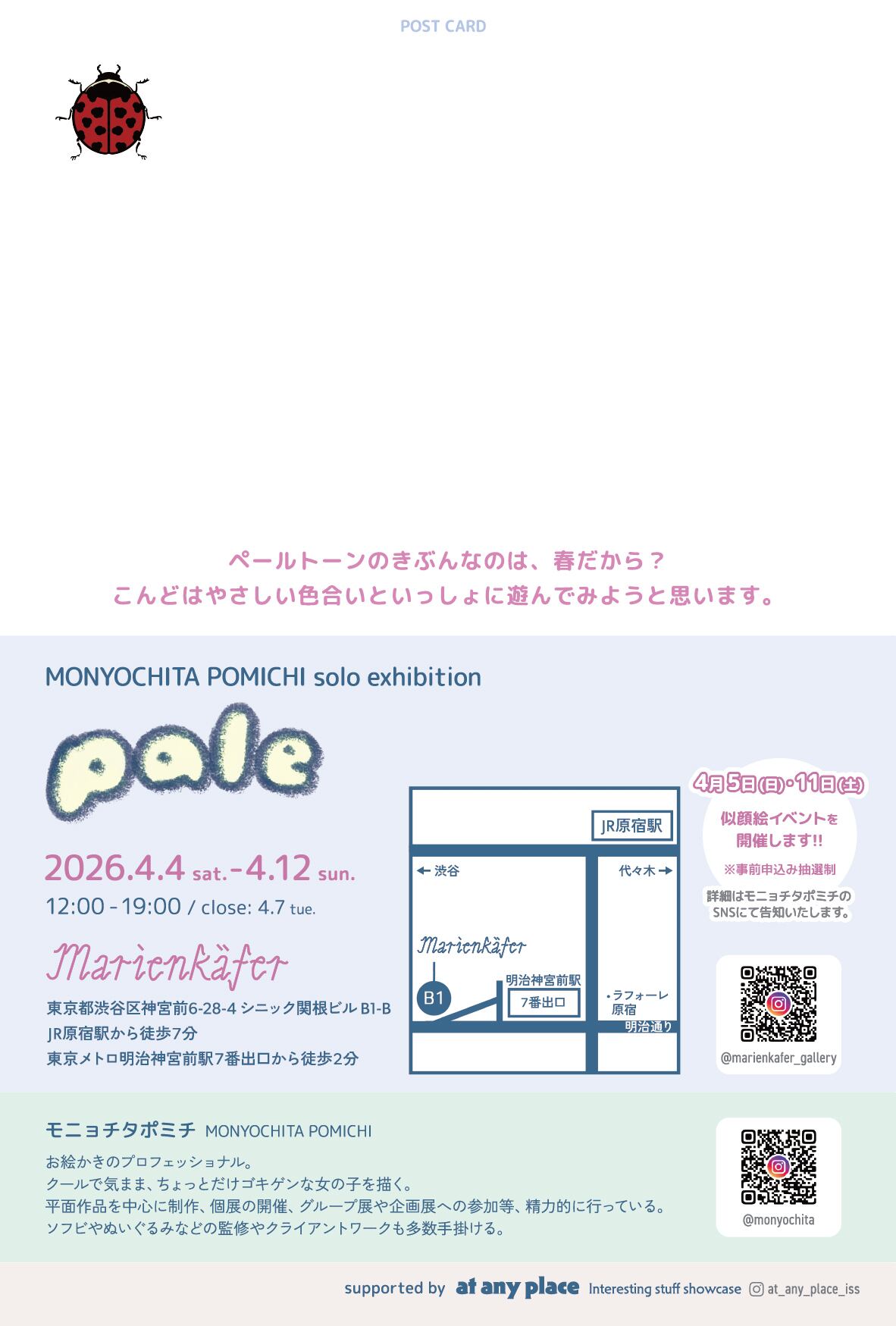 モニョチタポミチ 似顔絵イべント【事前申込み抽選制】 @原宿 マリーエンケーファー 4/11(土) ⑤ 16:30~17:00