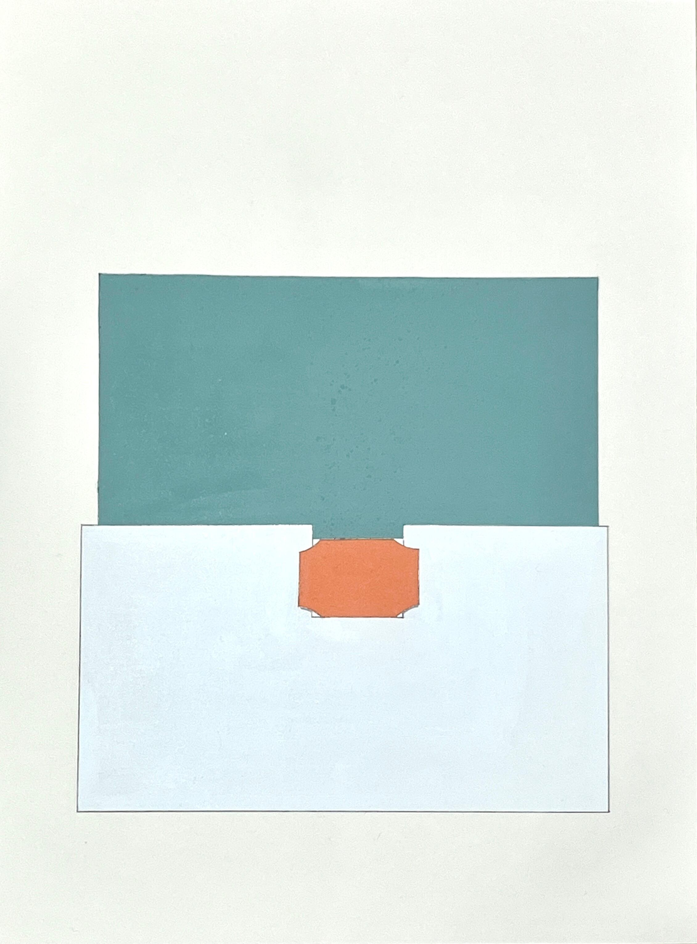作品を描くときは物体同士がどのように構成されているか考えて架空の立体物を描いてきました。本展では形同士がどう保たれるか 平面に置き換えて最小の形で探し、フレームに見立てたベースにいろんな形のパーツを固定させた状態を描きました。