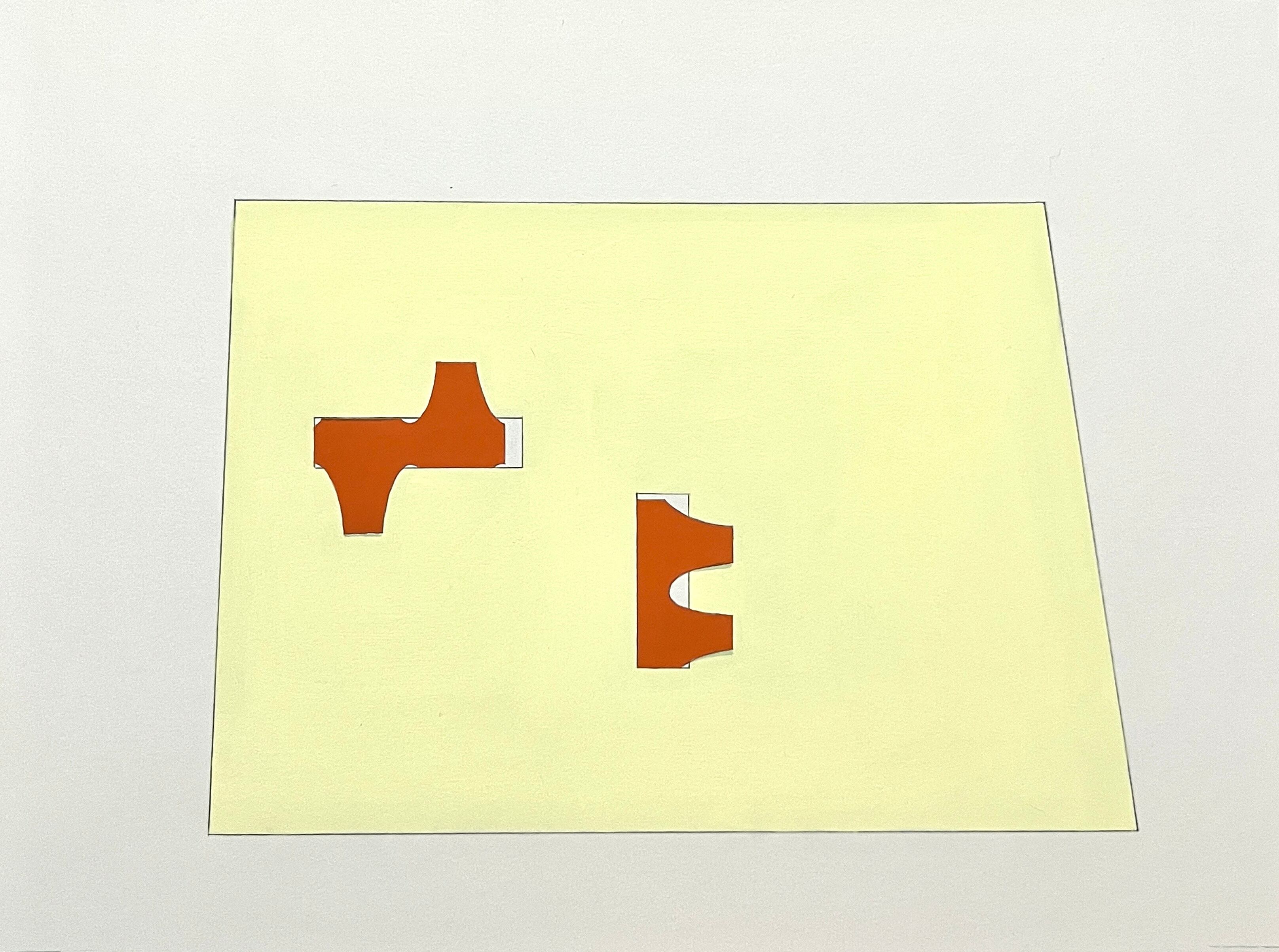 作品を描くときは物体同士がどのように構成されているか考えて架空の立体物を描いてきました。本展では形同士がどう保たれるか 平面に置き換えて最小の形で探し、フレームに見立てたベースにいろんな形のパーツを固定させた状態を描きました。