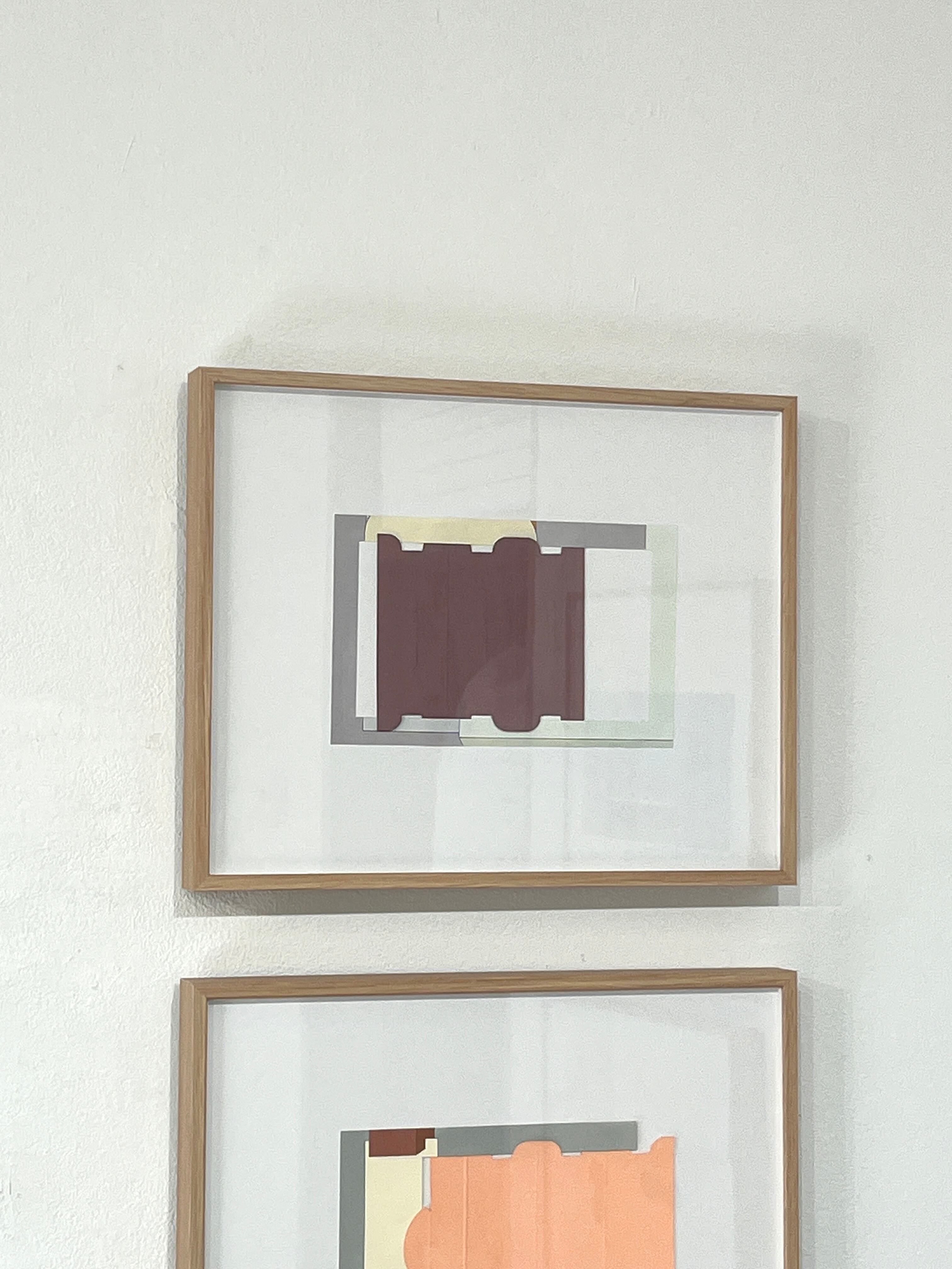 コラージュ作品・紙にアクリルガッシュ・印刷紙(展示ポストカード) / 額装