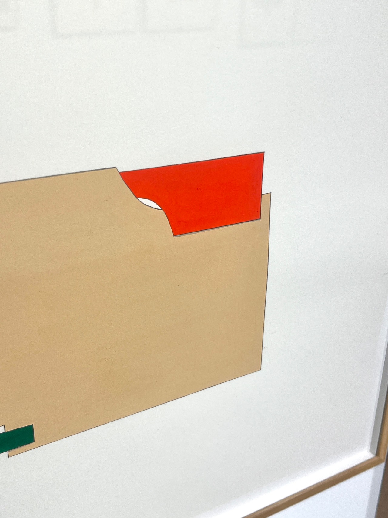 作品を描くときは物体同士がどのように構成されているか考えて架空の立体物を描いてきました。本展では形同士がどう保たれるか 平面に置き換えて最小の形で探し、フレームに見立てたベースにいろんな形のパーツを固定させた状態を描きました。