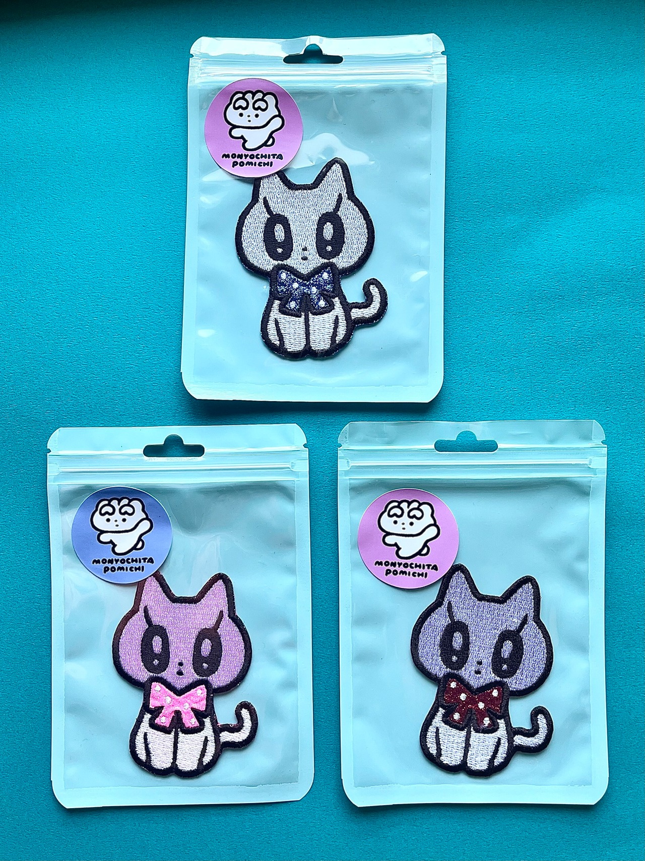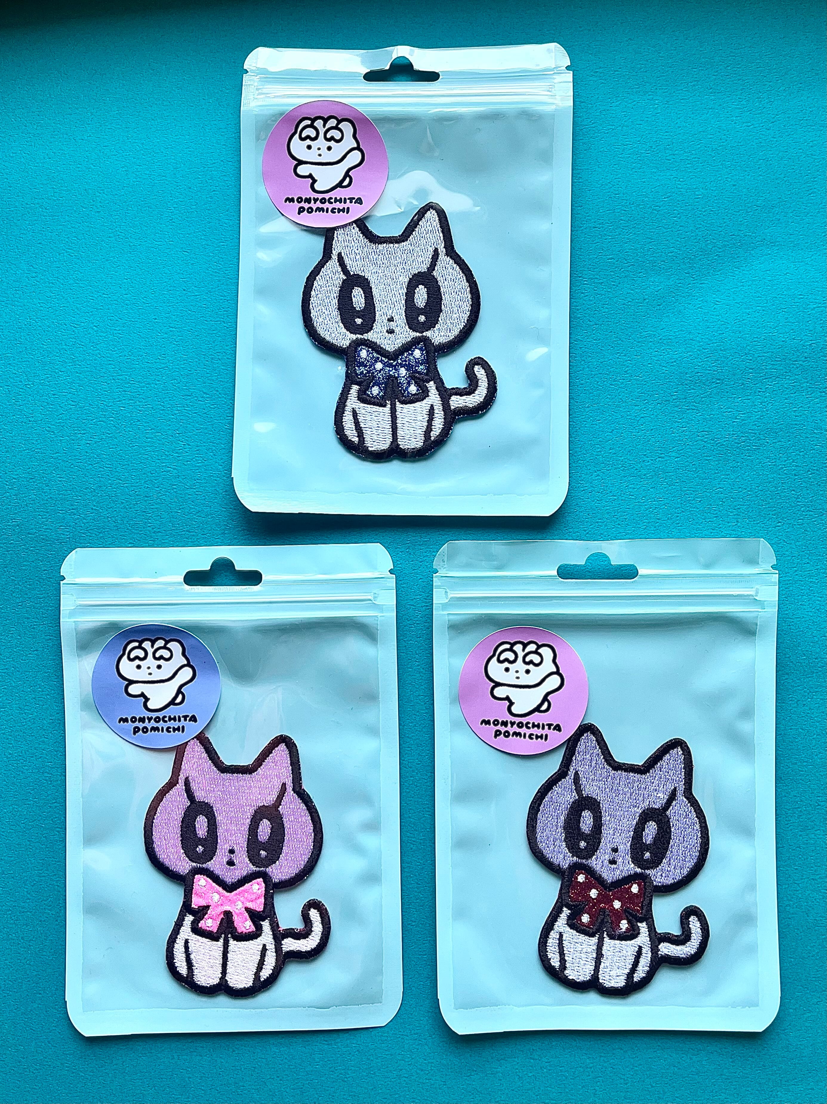 モニョチタポミチ リボンねこちゃん グリッターワッペン 3カラー