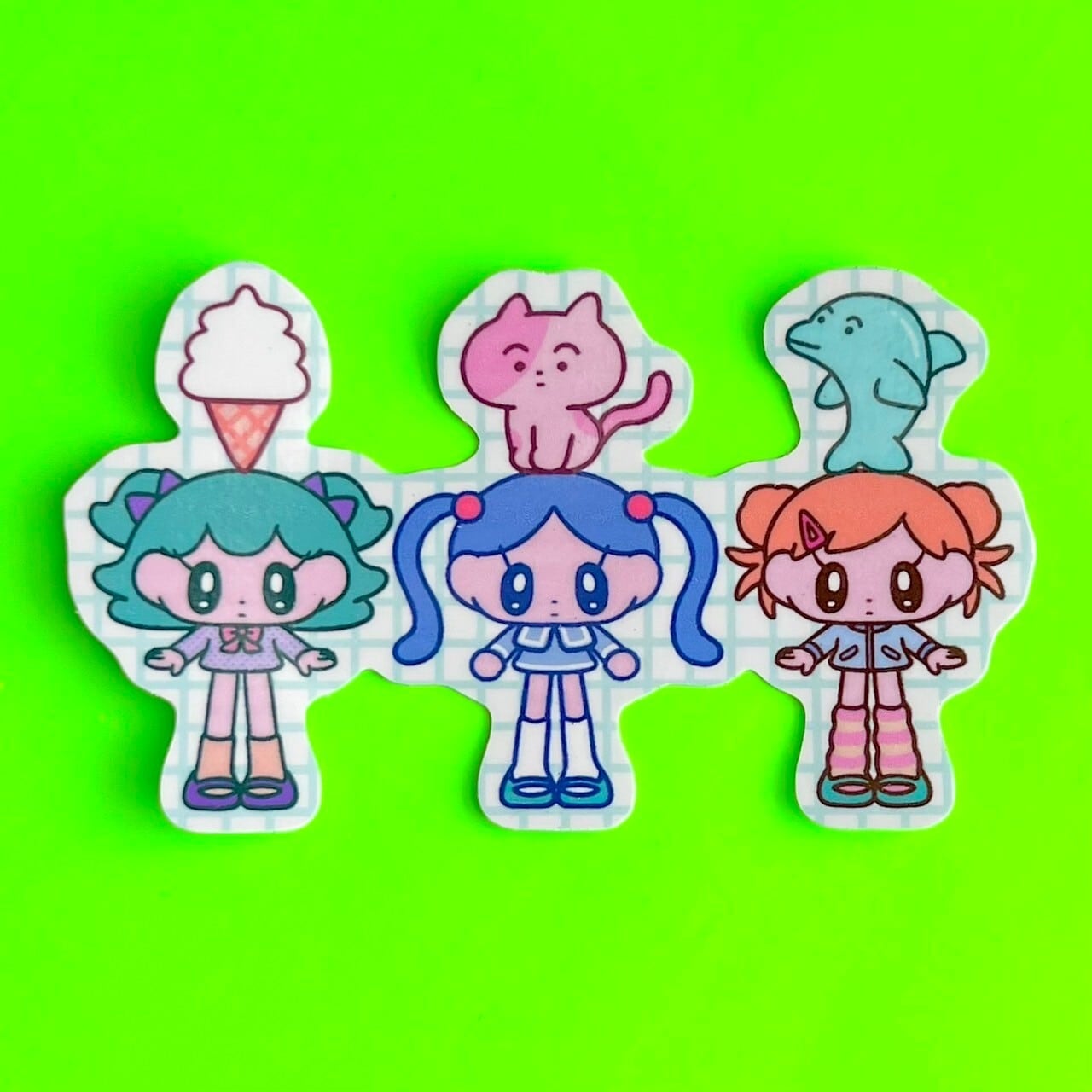 2024年4月刊行、モニョチタポミチ初の絵本「のっけてみたの」に登場するキャラクターをモチーフとしたステッカー